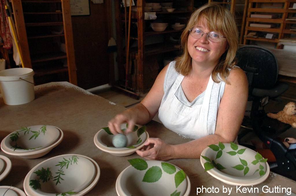Kaleidoscope Pottery, located in Easthampton, Massachusetts is owned and operated by Evelyn Snyder. Evelyn started in 1992 as assistant to original founder Kathy Hibshman and then-partners Barry Schechter, Peter Feitner and Christy Knox. The original studio was begun in Vermont circa. 1973, by Kathy. Barry and Kathy moved the studio to Massachusetts and were joined in the 80's by Peter and Christy. Kathy and Barry retired around 1993 and Christy and Peter moved on to other pursuits around 1998.