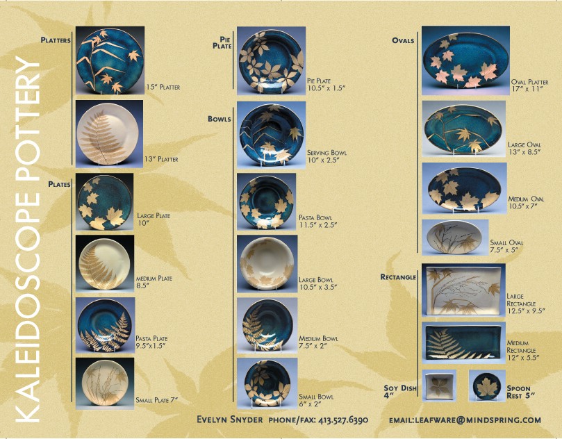 In addition to individual pieces, we can help you put together groupings such as Dinner Sets or Bridal Registries. Please call if you would like more information about these. Our studio telephone number is (413)527-6390.